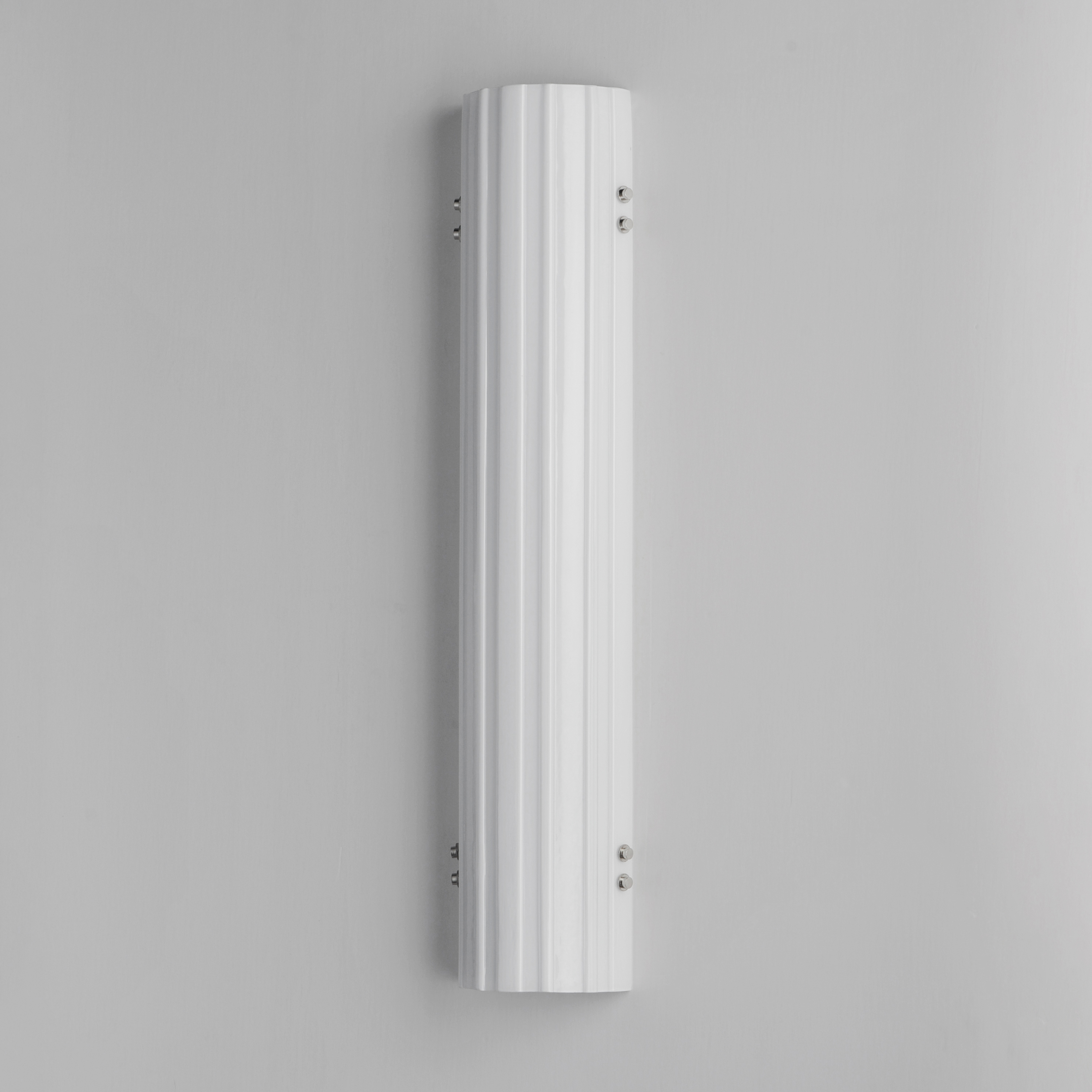 With simple linear compositions and an elongated curved form, Mat Sanders draws inspiration from the Streamline Modern era of the 1930s. The faceted opal white glass elegantly diffuses light, while solid brass details provide an elevated, timeless look. Select from 5 color temperatures by adjusting the toggle switch easily accessible behind the shade.