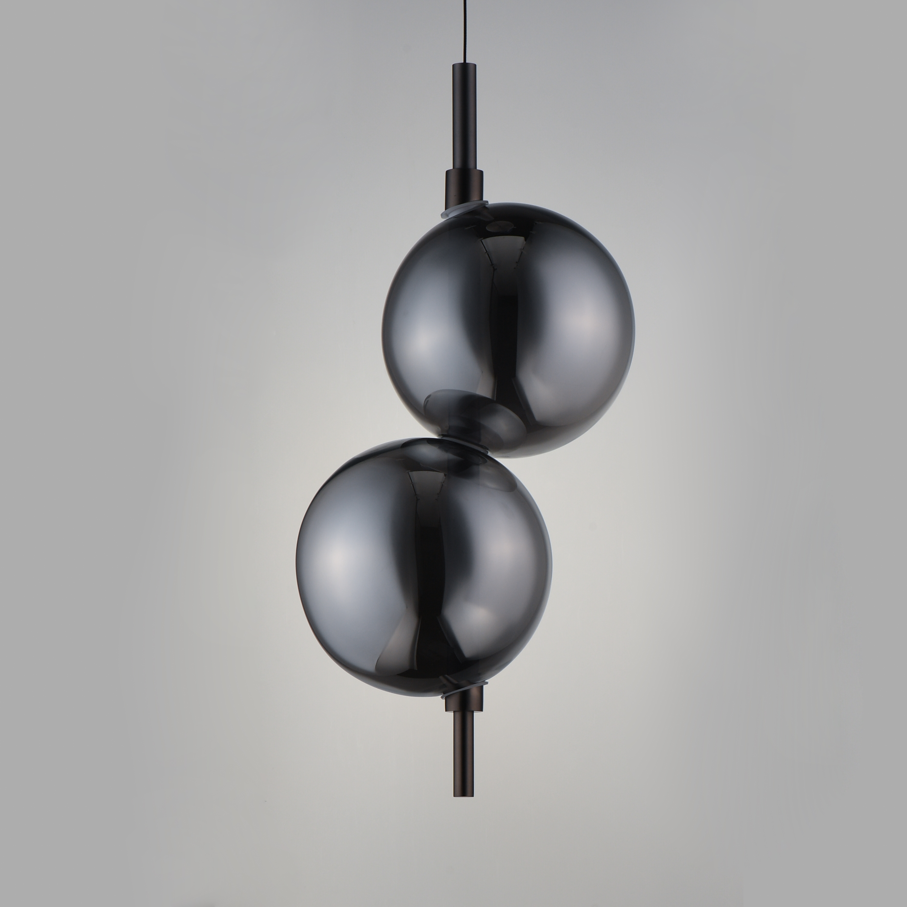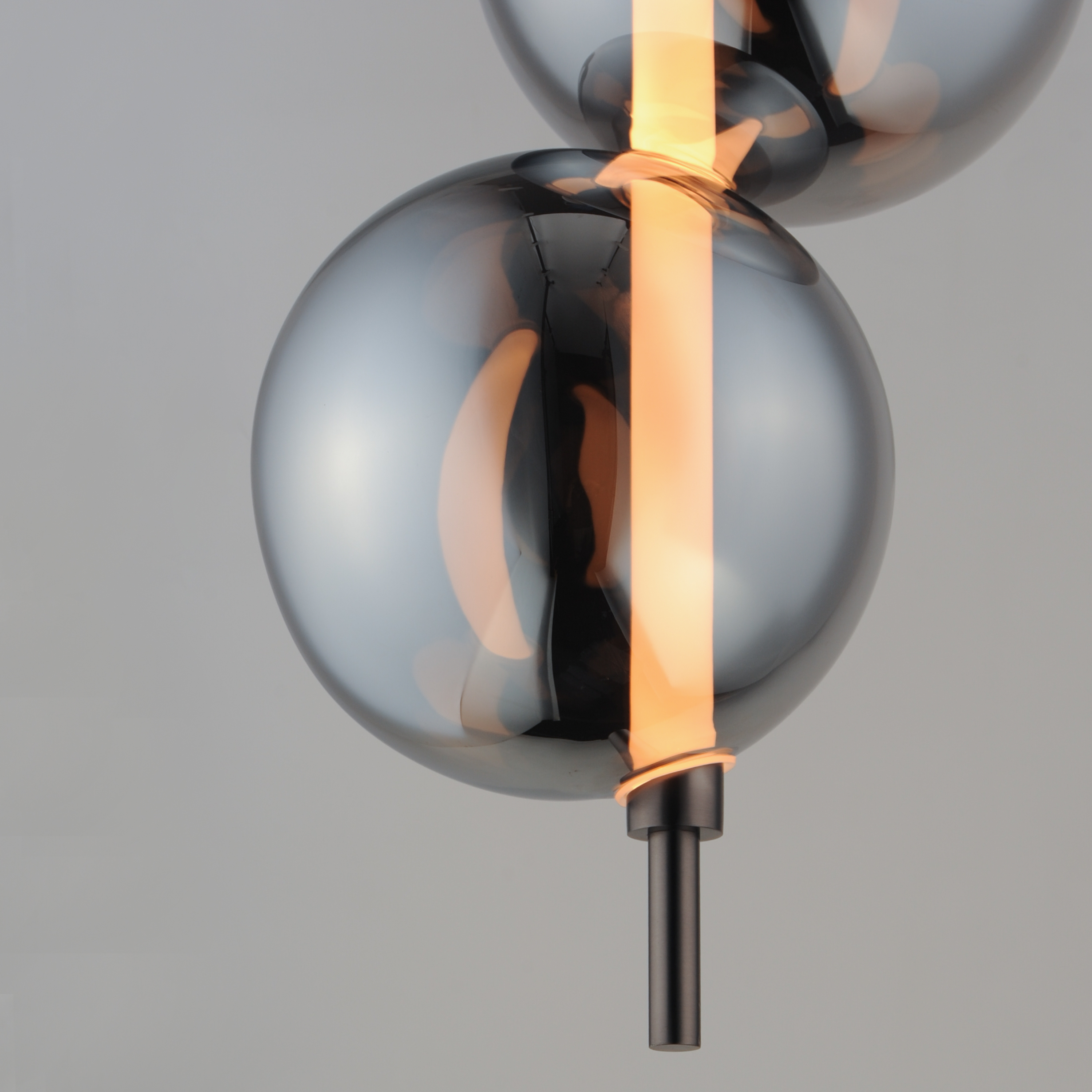 Drawing inspiration from her acclaimed "Dreamcloud" experiential design at Art Basel Miami, Nina Magon reinterprets her otherworldly installation for use in the home or hospitality project. The exaggerated curve, definitive of Magon's lighting design, suspends iridescent bubble-like glass forms that appear to float across channels of LED illumination. Available in Heritage Brass and Gunmetal finishes, this Dreamer pairs perfectly with coordinating finishes in the Nina Magon lighting collection.