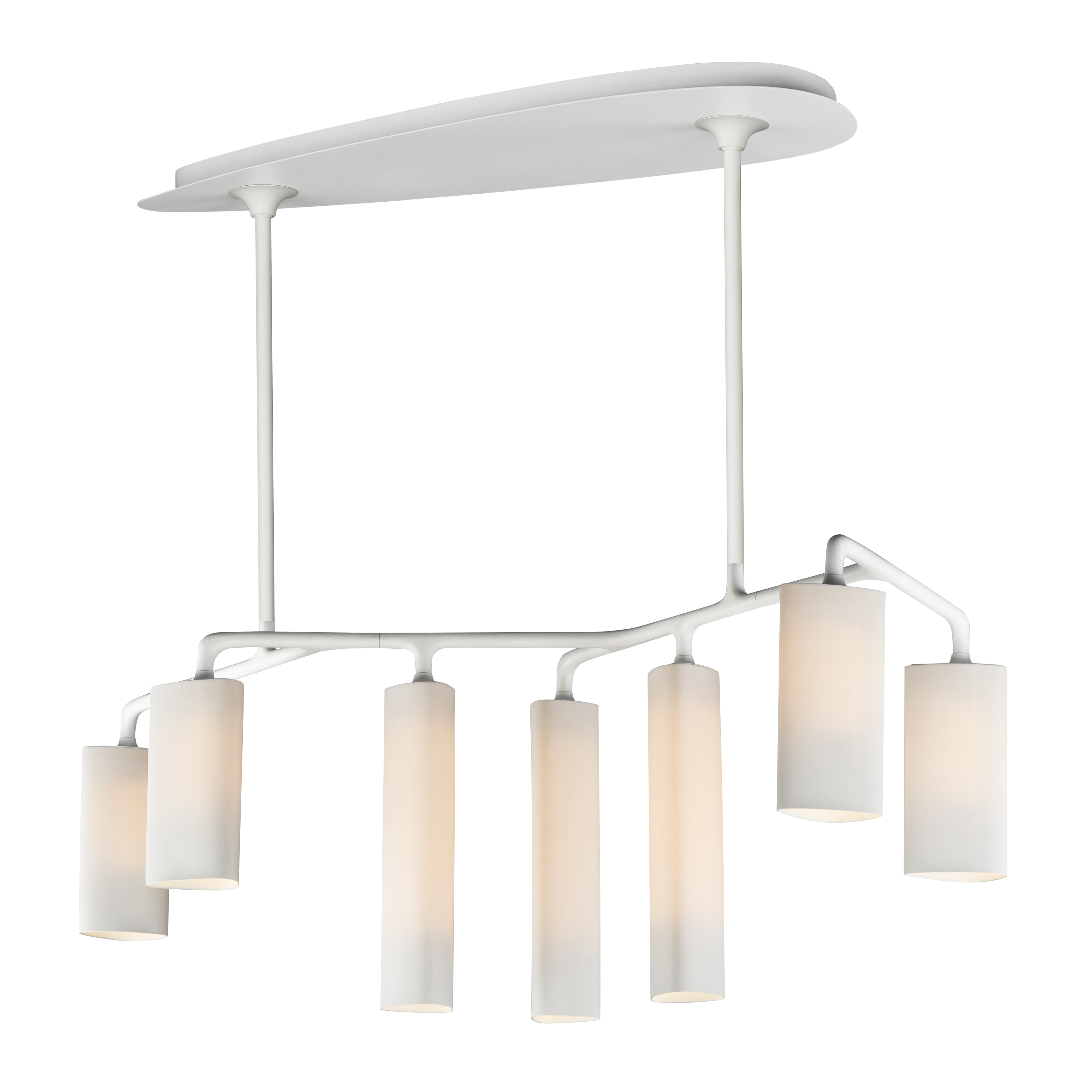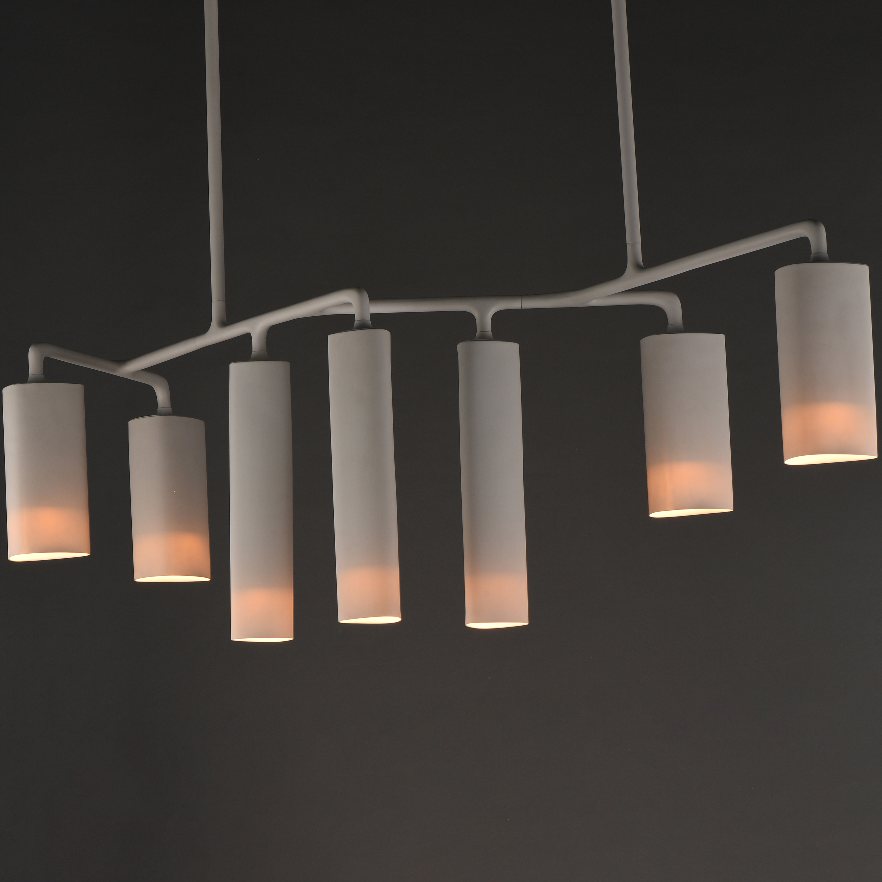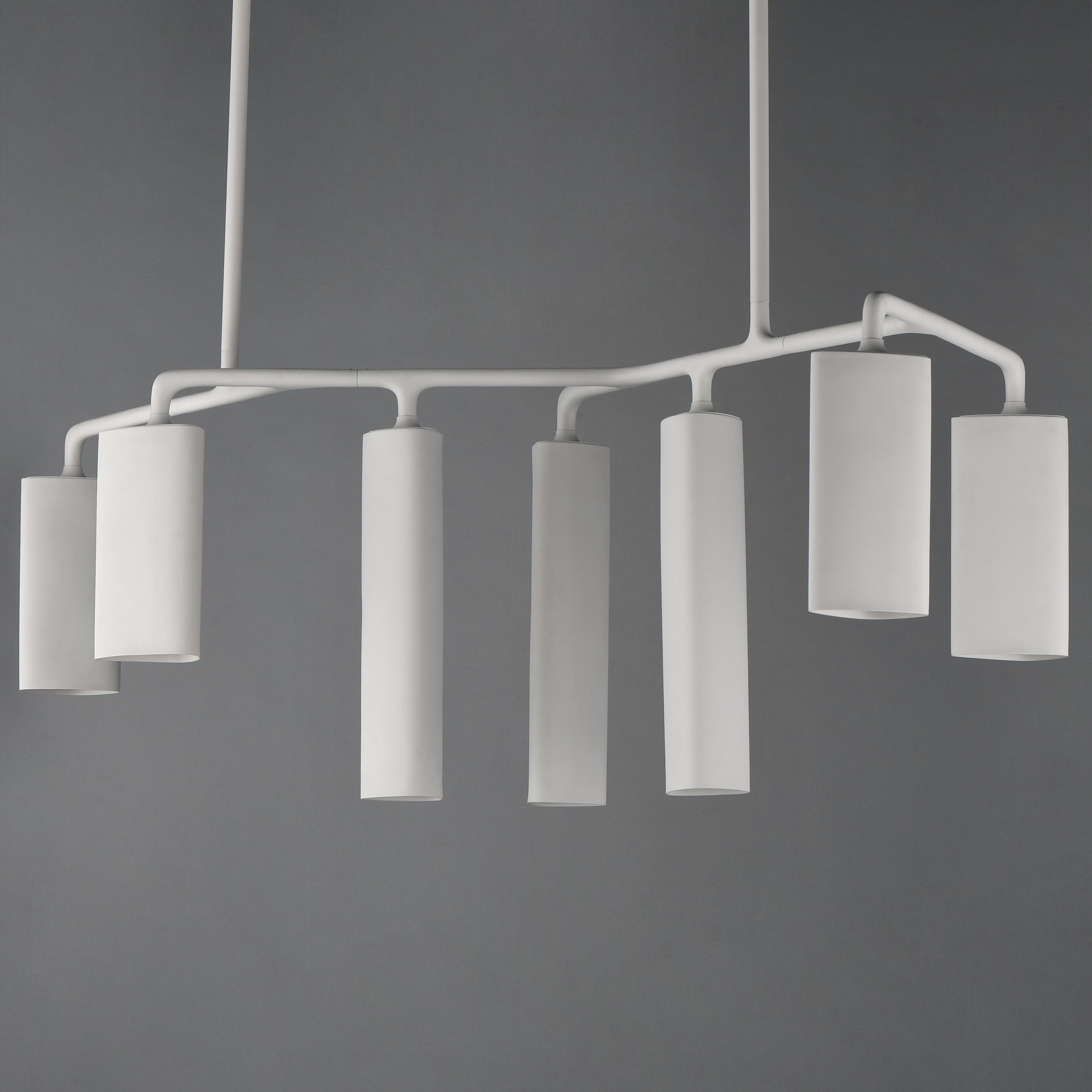 Tropo translates the artistry Michelin-starred chefs cherish in Hering Berlin porcelain into illumination. Designed by Stefanie Hering, this chandelier balances a modern abstract silhouette with the timeless grace of a dining-room candelabra. Translucent bone-china shades bathe the table in soft ambient light, while a separately switched downlight provides a focused highlight for plates or centerpieces. Tropo transforms meals into immersive experiences where the subtle drama of light elevates every gathering.