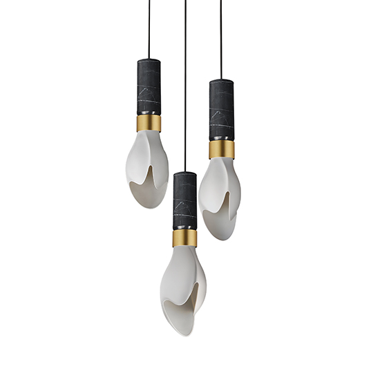 Burgeon draws its beauty from the quiet moment just before a flower opens. A softly bloomed porcelain shade cradles light with warmth and intention. Designed by Stefanie Hering, the collection reflects her balance of disciplined German craftsmanship and the expressive soul of Berlin. Housings in brushed metal or marble lend a sense of permanence. Whether portable, pendant, or wall sconce, Burgeon captures stillness, restraint, and the power of quiet elegance.