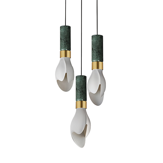 Burgeon draws its beauty from the quiet moment just before a flower opens. A softly bloomed porcelain shade cradles light with warmth and intention. Designed by Stefanie Hering, the collection reflects her balance of disciplined German craftsmanship and the expressive soul of Berlin. Housings in brushed metal or marble lend a sense of permanence. Whether portable, pendant, or wall sconce, Burgeon captures stillness, restraint, and the power of quiet elegance.