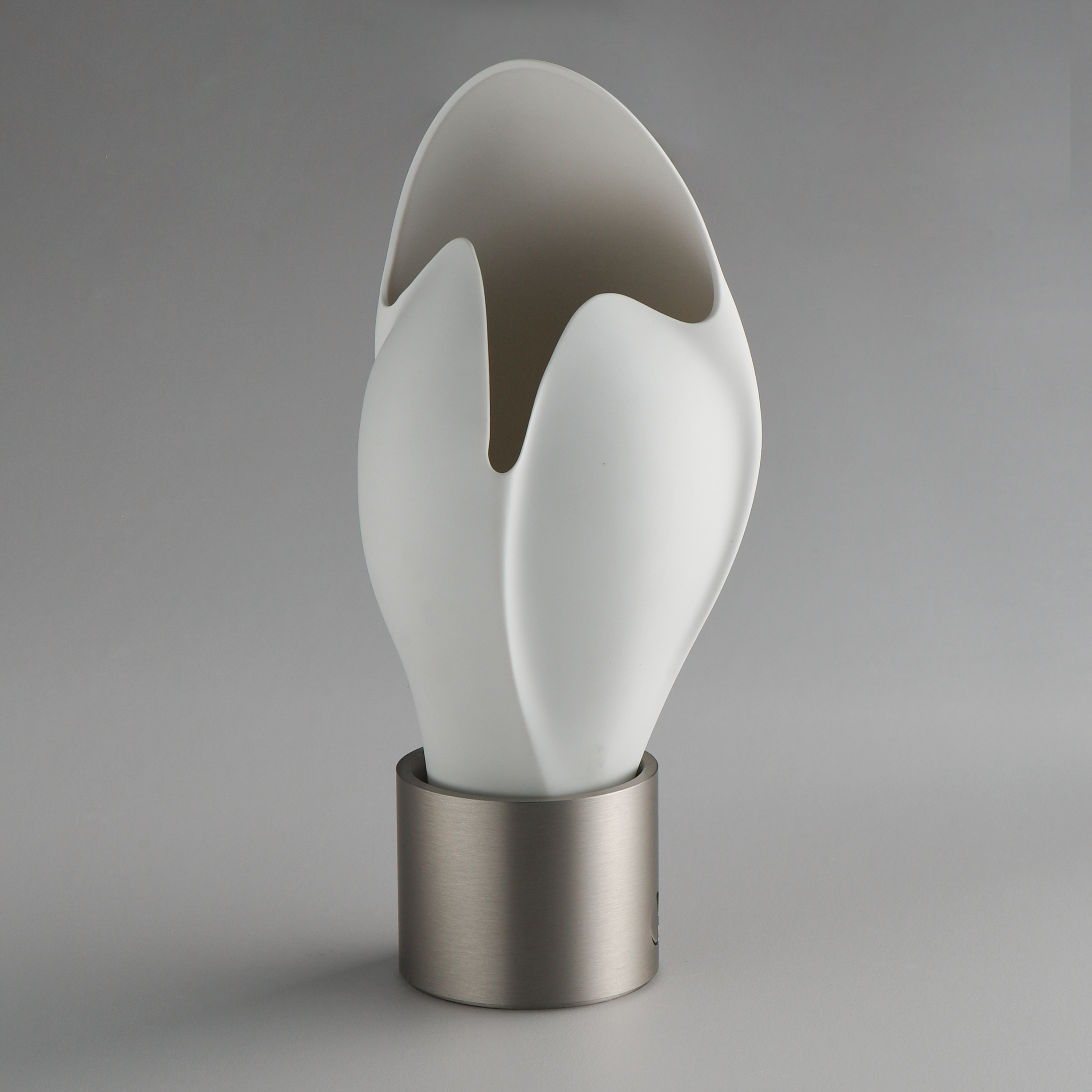 Burgeon draws its beauty from the quiet moment just before a flower opens. A softly bloomed porcelain shade cradles light with warmth and intention. Designed by Stefanie Hering, the collection reflects her balance of disciplined German craftsmanship and the expressive soul of Berlin. Housings in brushed metal or marble lend a sense of permanence. Whether portable, pendant, or wall sconce, Burgeon captures stillness, restraint, and the power of quiet elegance.