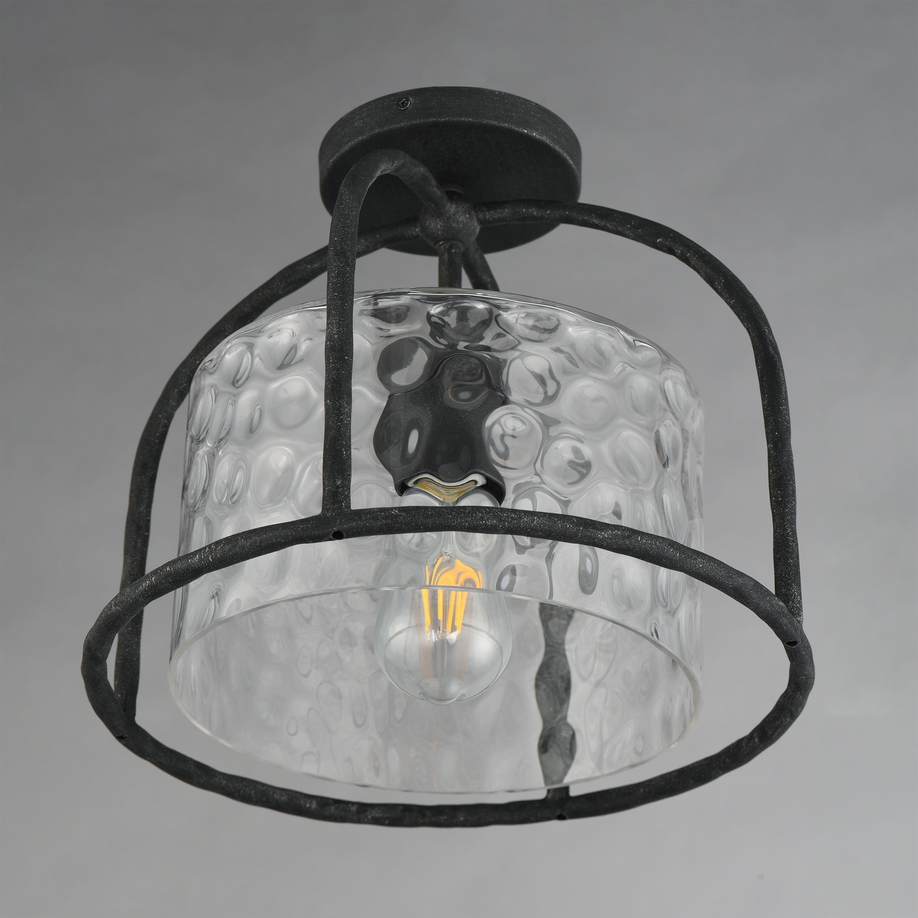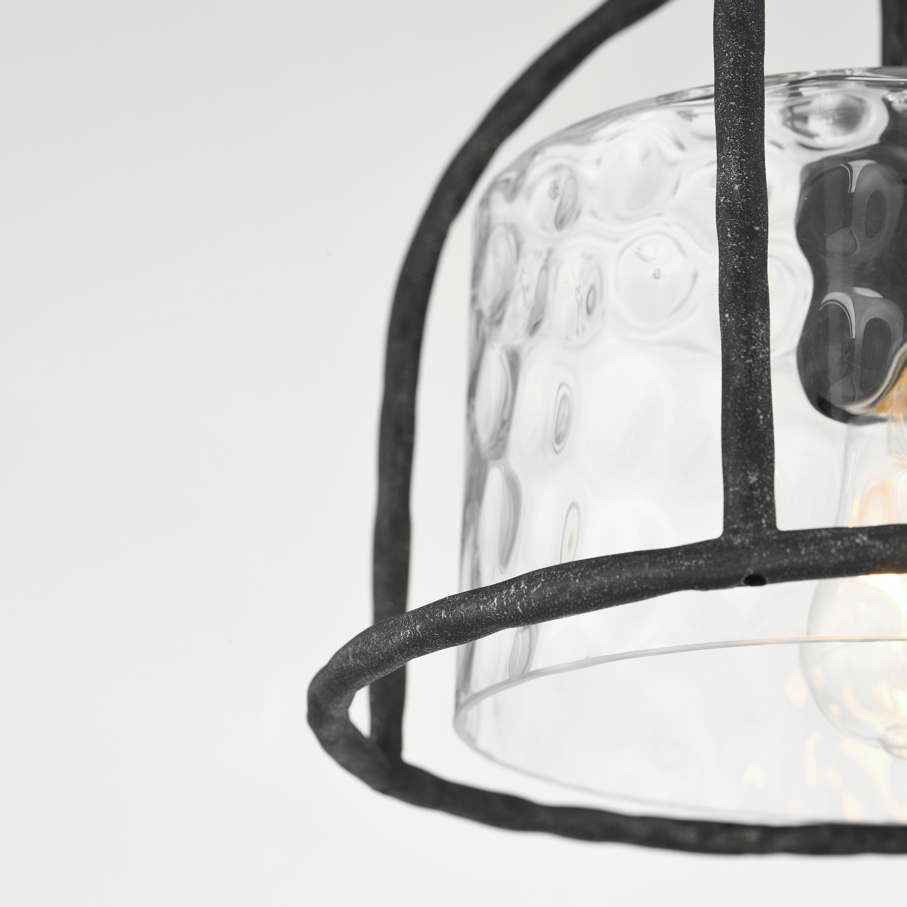 Inspired by classic European lanterns and handcrafted ironwork, the Del Mar collection brings timeless sophistication to exterior spaces. Its airy open-frame silhouette is crafted of hammered iron, elegantly arched with a graceful hook detail that nods to historic gas lamps. Inside the frame, a delicate Water glass cylinder shimmers with texture, diffusing light in a soft, atmospheric glow. Designed for lasting beauty in the elements, each piece is finished in a richly layered Blacksmith finish--a deep near-black tone highlighted by silvery brushstrokes, adding artisanal character to the silhouette. Whether flanking a grand entry or lining a garden path, Del Mar offers a refined approach to outdoor lighting with enduring presence.