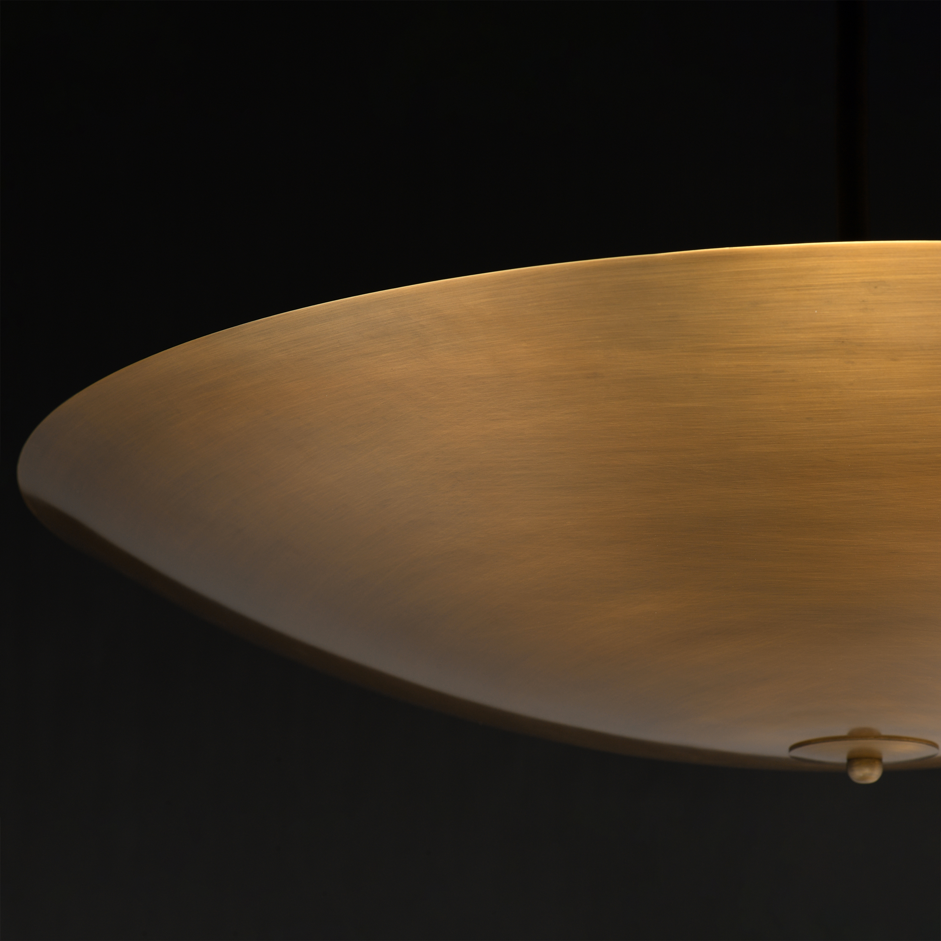 Symbolic of the hearth and home, the Vesta collection draws inspiration from the Roman goddess represented by the fire of her temple. Large diameters of shallow, inverted vessels disperse indirect light upward scattering softer, ambient light toward the ceiling. Purposeful in design and its applications, a Dim-to-Warm feature is integrated into the LED light engine so that as you adjust a dimmer switch, the light emitted becomes warmer and more relaxing. Highly reflective, polished metal finishes of rich French Gold or cool Polished Chrome elevate the minimalistic forms with vibrancy, while dramatic two-tone options combining "Mat" White or "Mat" Black shades allow for more neutral compositions. Available in pendant, sconce, and table lamp configurations this collection demonstrates Mat Sanders' expertise in creating product and spaces that are both effortlessly sophisticated and pleasantly welcoming.