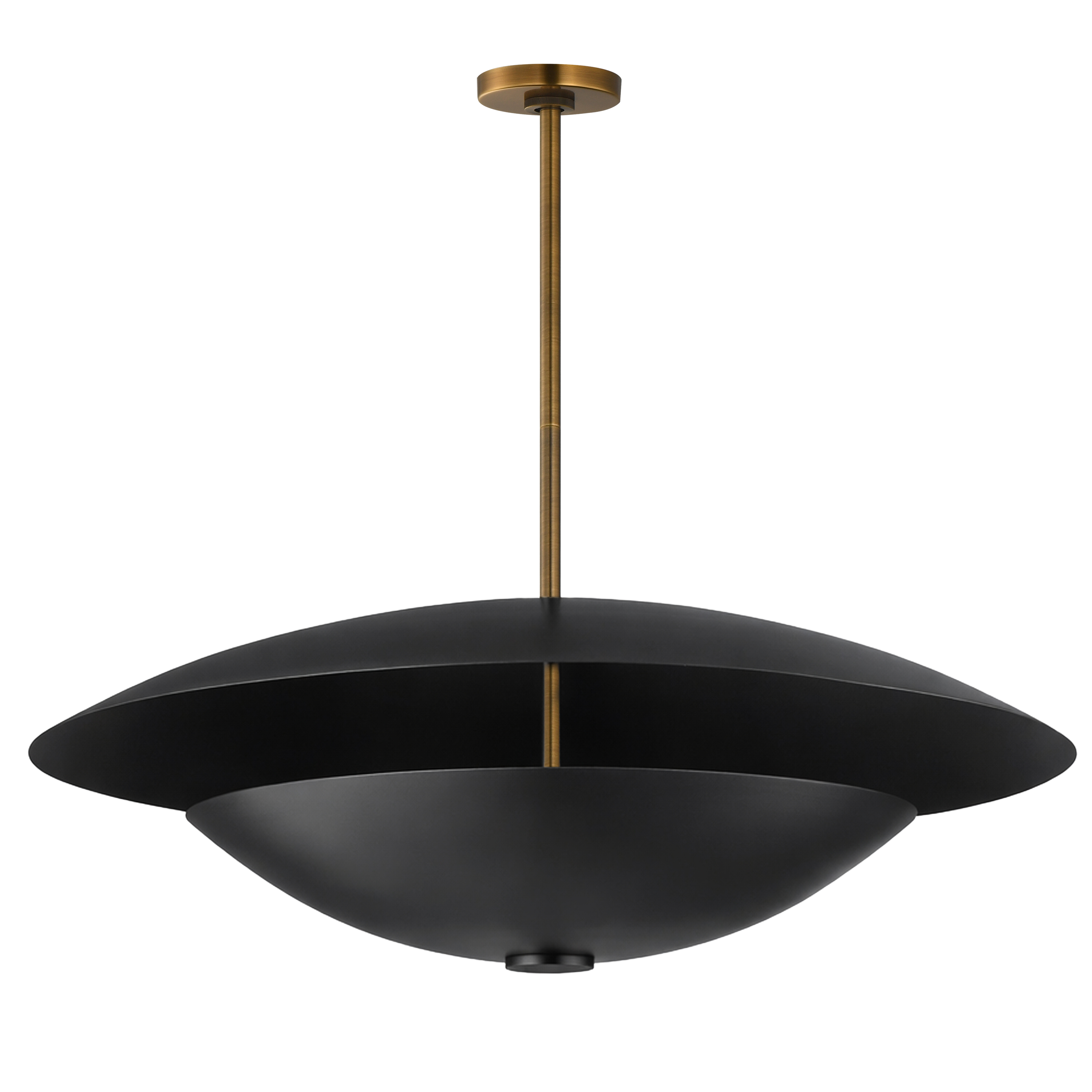 Symbolic of the hearth and home, the Vesta collection draws inspiration from the Roman goddess represented by the fire of her temple. Large diameters of shallow, inverted vessels disperse indirect light upward scattering softer, ambient light toward the ceiling. Purposeful in design and its applications, a Dim-to-Warm feature is integrated into the LED light engine so that as you adjust a dimmer switch, the light emitted becomes warmer and more relaxing. Highly reflective, polished metal finishes of rich French Gold or cool Polished Chrome elevate the minimalistic forms with vibrancy, while dramatic two-tone options combining "Mat" White or "Mat" Black shades allow for more neutral compositions. Available in pendant, sconce, and table lamp configurations this collection demonstrates Mat Sanders' expertise in creating product and spaces that are both effortlessly sophisticated and pleasantly welcoming.