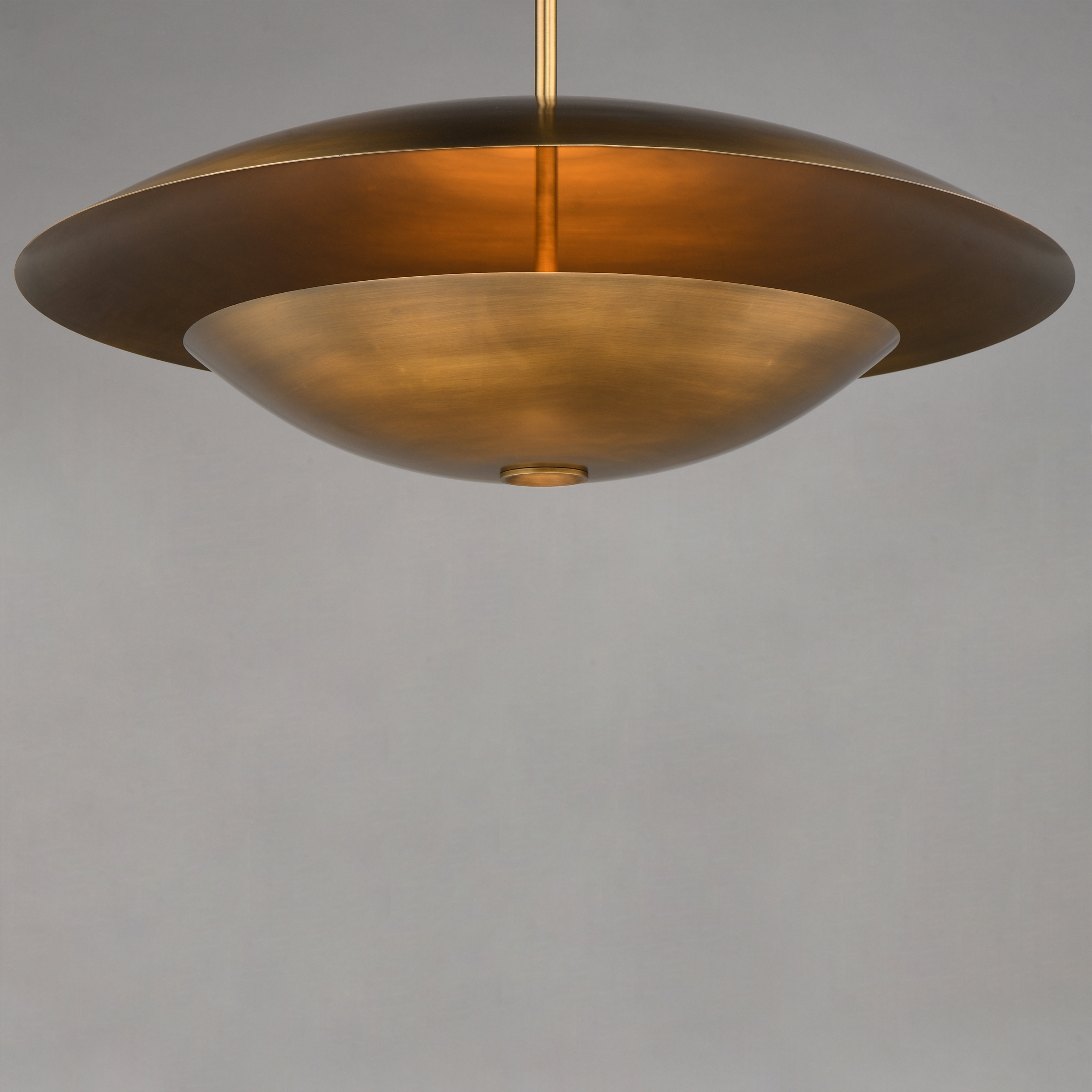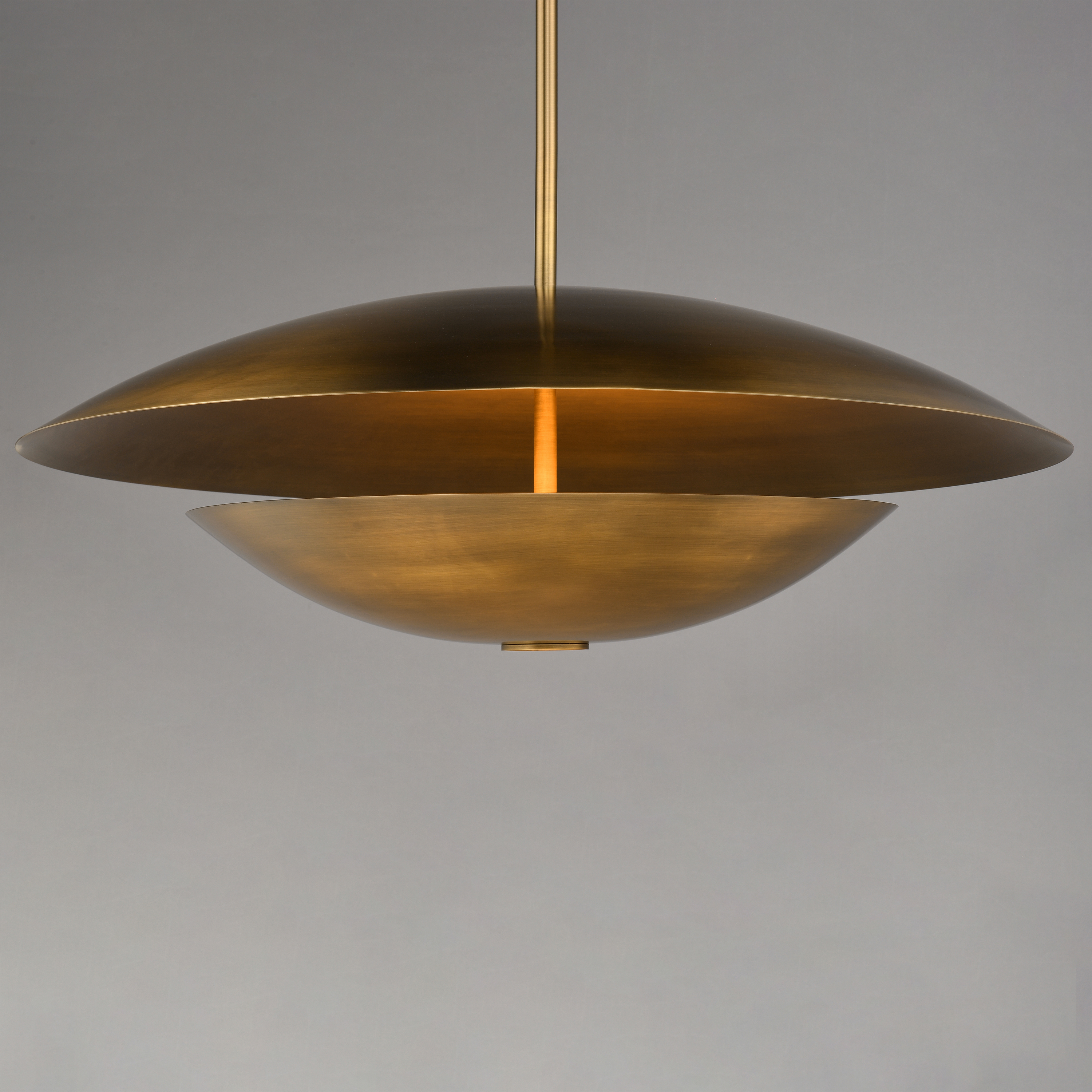 Symbolic of the hearth and home, the Vesta collection draws inspiration from the Roman goddess represented by the fire of her temple. Large diameters of shallow, inverted vessels disperse indirect light upward scattering softer, ambient light toward the ceiling. Purposeful in design and its applications, a Dim-to-Warm feature is integrated into the LED light engine so that as you adjust a dimmer switch, the light emitted becomes warmer and more relaxing. Highly reflective, polished metal finishes of rich French Gold or cool Polished Chrome elevate the minimalistic forms with vibrancy, while dramatic two-tone options combining "Mat" White or "Mat" Black shades allow for more neutral compositions. Available in pendant, sconce, and table lamp configurations this collection demonstrates Mat Sanders' expertise in creating product and spaces that are both effortlessly sophisticated and pleasantly welcoming.