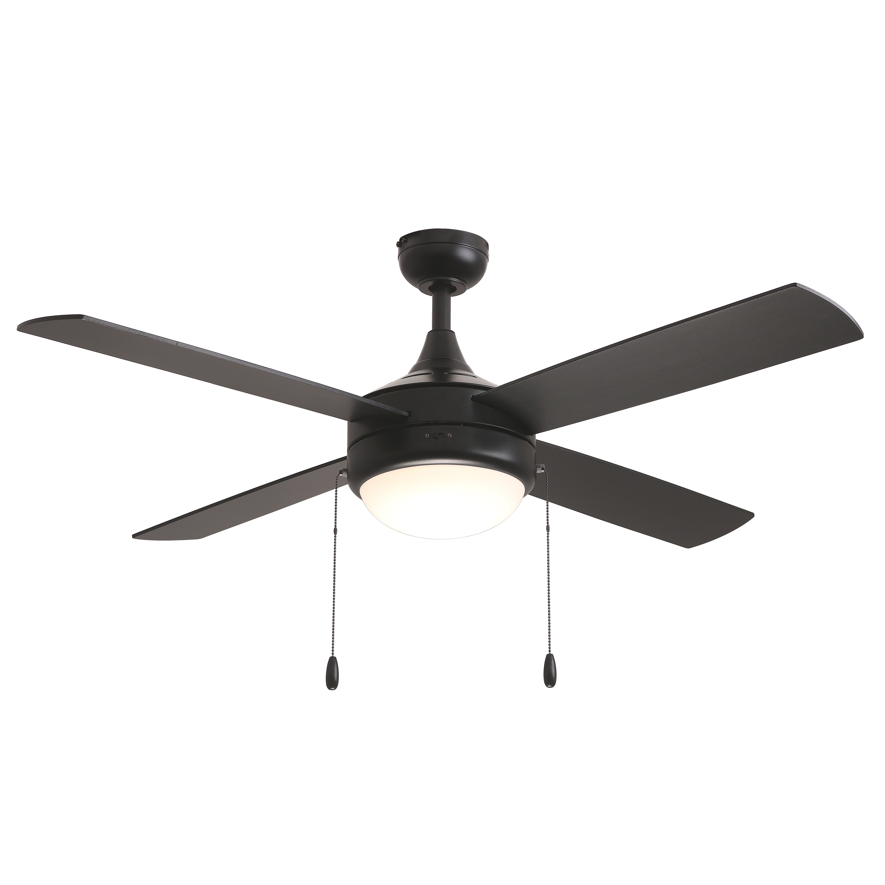 Featuring four straight fan blades in black on one side and silver on the other, as well as a black and matte white variant, the Quattro fan offers a modern yet transitional style at affordable prices. LED JA8 compatible lamps and a pull chain are supplied to power the fixture.